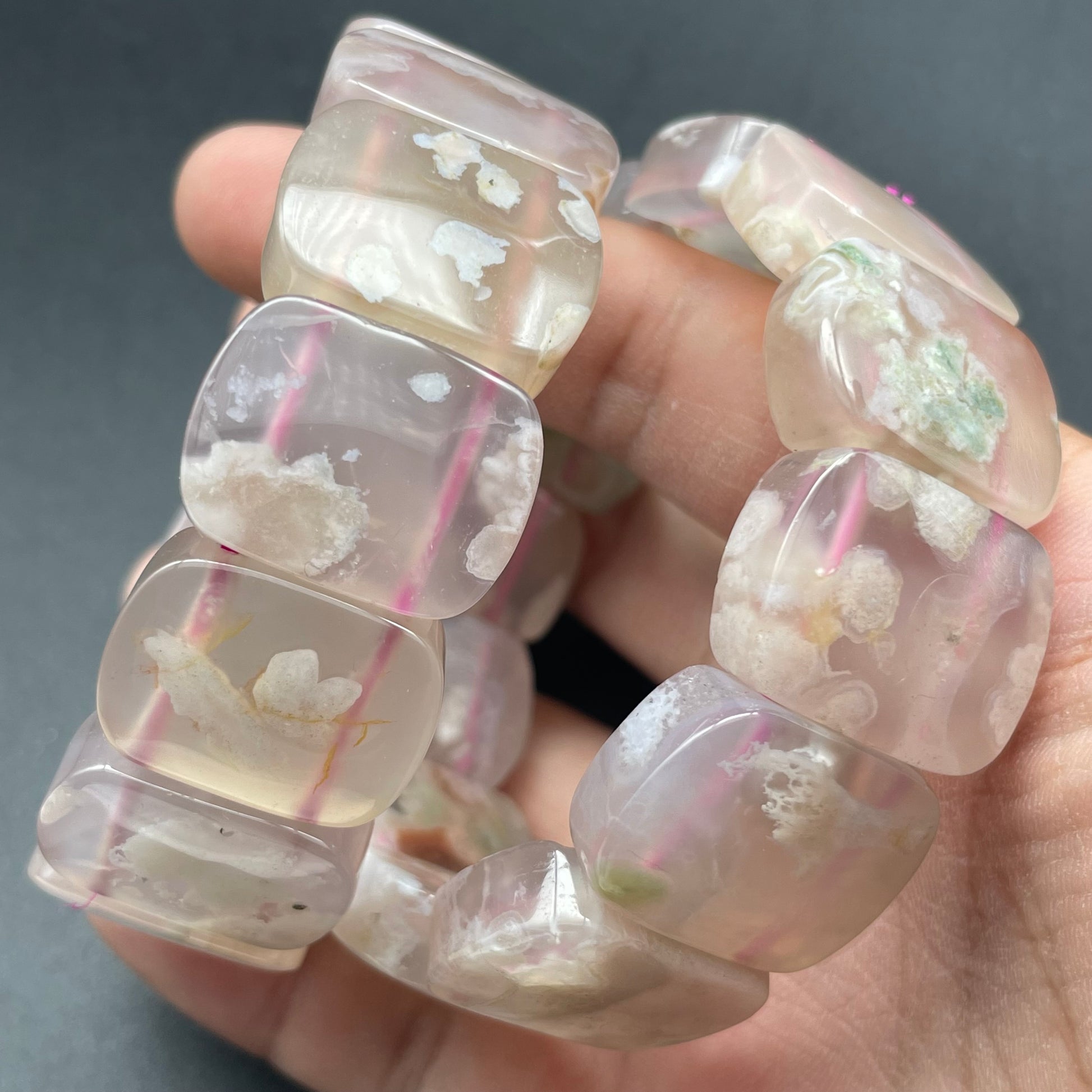櫻花瑪瑙是瑪瑙中最特別的一種,顧名思意猶如朵朵盛開的櫻花一樣,內部結晶每顆顏色和形態獨一無二,這就是它最吸引之處,櫻花瑪瑙的形成是經過上億萬年才能形成的,唯美的外貌和功效一直也深受女生的歡迎。