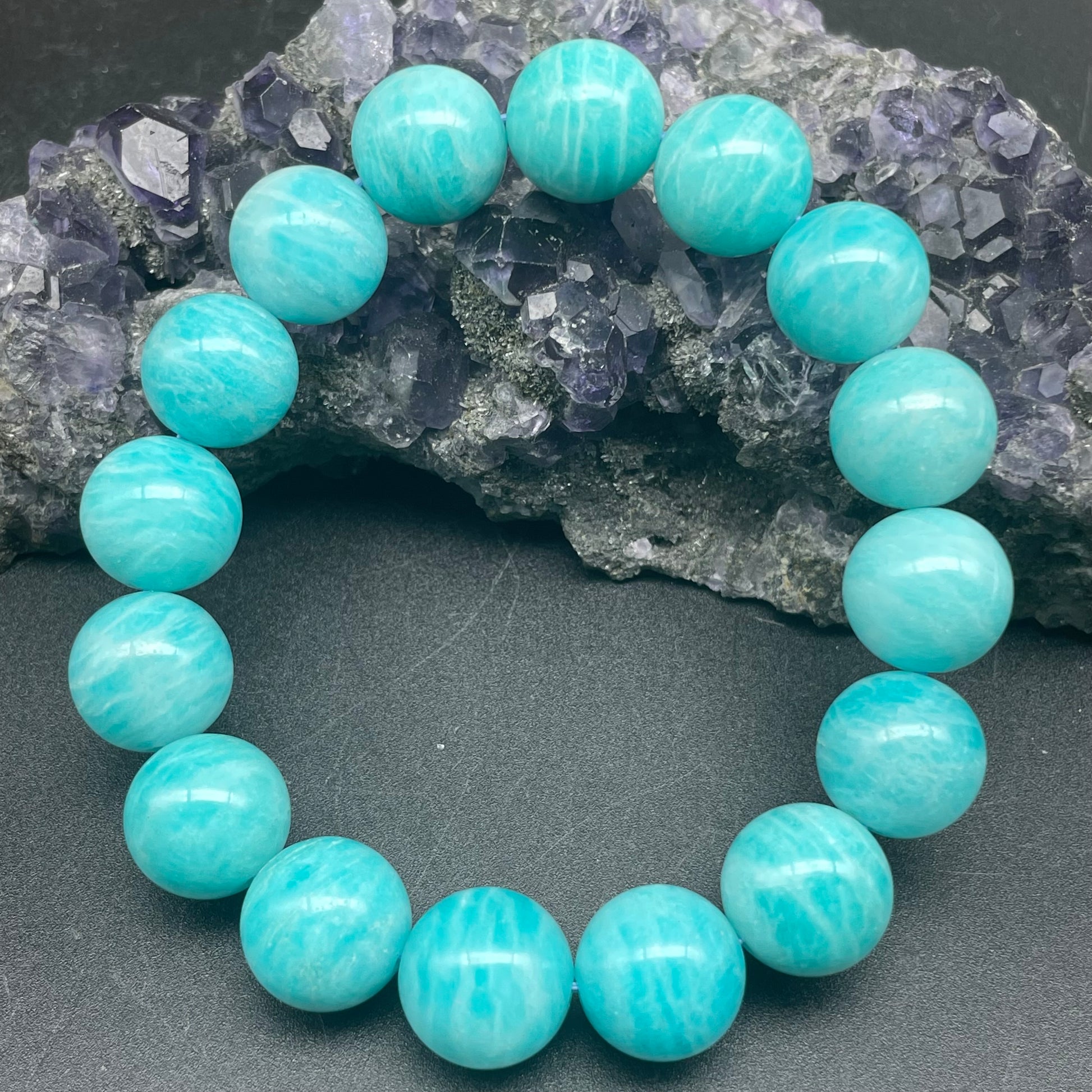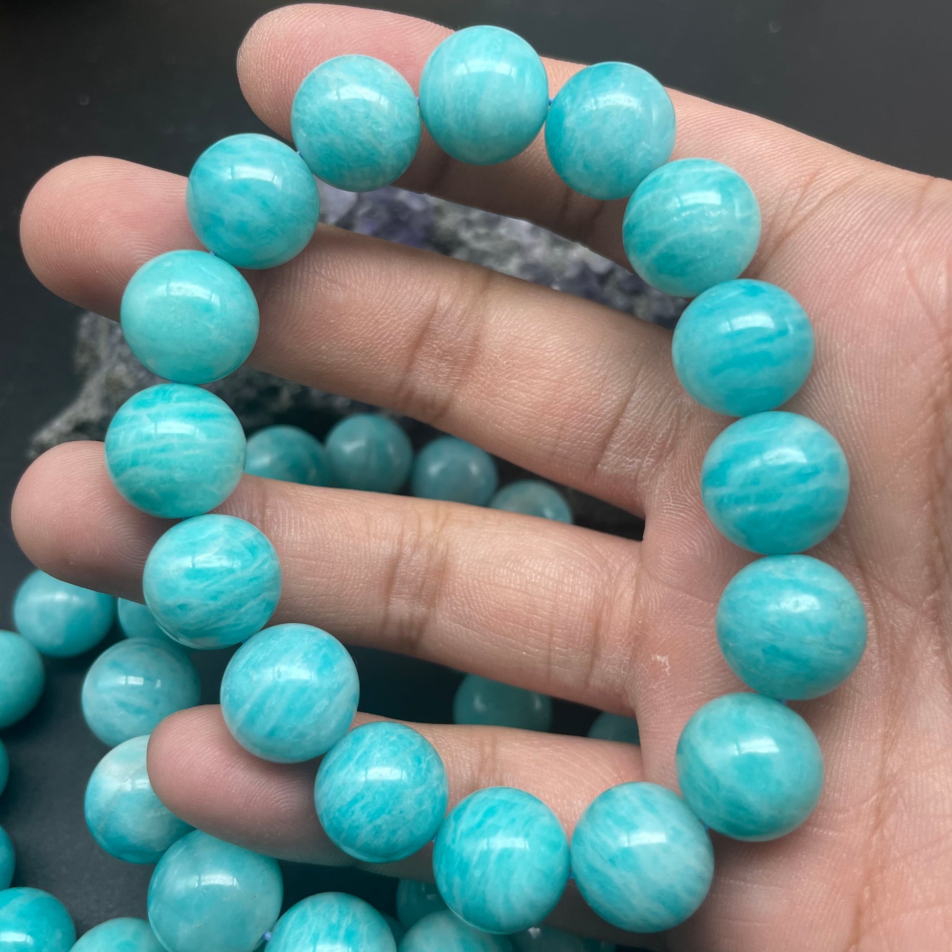 天河石(Amazonite),又稱「亞馬遜石」是一種可以增加自信的幸運石,又名為「希望之石」,可以令人變得積極,避免出現鑽牛